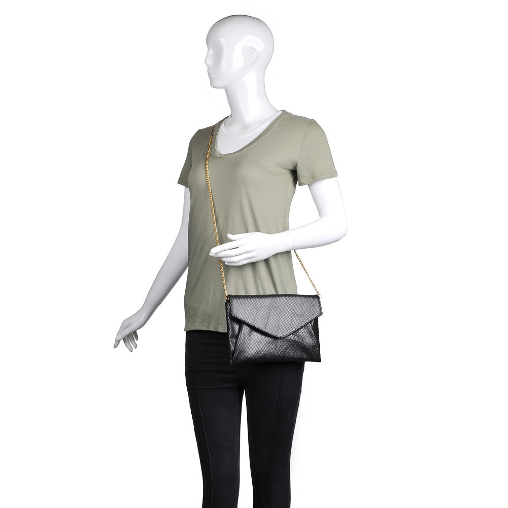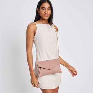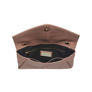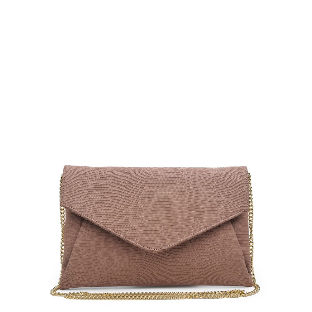 The unique design of the Cara clutch bag makes it this season's absolute must-have. The envelope clutch design with folded front diagonal seams, and the genuine leather exterior, make the Cara one of a kind. Keep everything safely tucked away in the bag's zipper and slip pockets. Cross the gold chain over your shoulder and get ready for a night out looking sophisticated and chic.