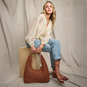 Exterior Details: Back zip with a Slip pocket on the front suede panel