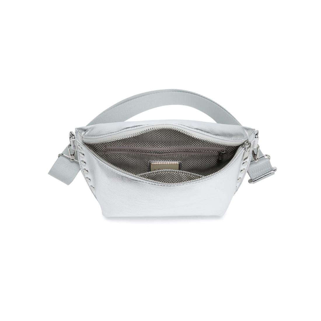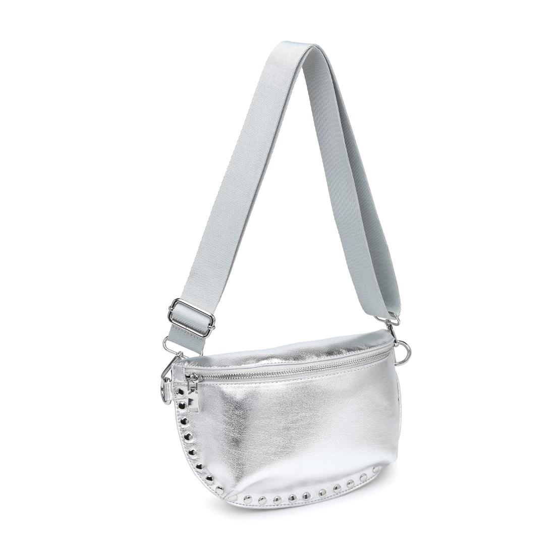 Compact yet roomy, zip-top main compartment plus rear zip pocket, adjustable wide strap for crossbody or waist wear. Smooth metallic finish, tonal rivet trim and polished hardware give on-trend polish. Hands-free functionality for errands, concerts, travel and evening plans. Versatile, easy-to-style accessory that pairs with denim or dresses. Secure, stylish and ready to go — add to cart for instant outfit impact.