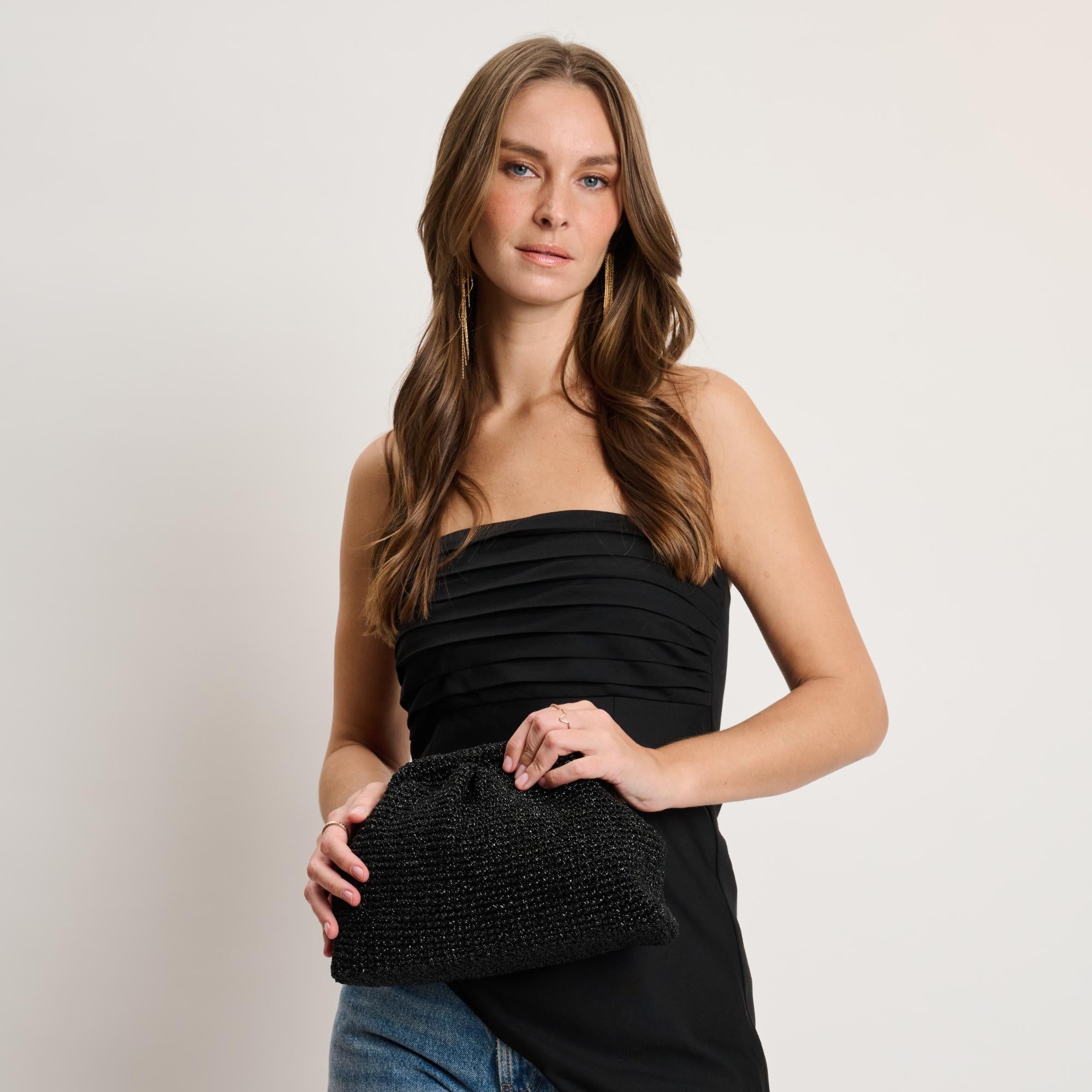 Woven silhouette, kiss-lock top and polished hardware. Convertible chain lets you wear it as a handheld or crossbody. Lined interior fits phone, cards and keys; structured yet lightweight for easy evenings. Timeless, trend-forward for tailored suiting or cocktail looks.