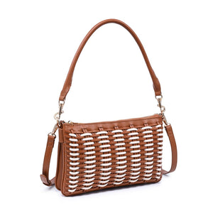 Woven-front Maggie Crossbody—modern structure, effortless polish.