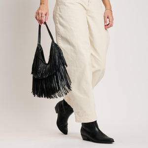 Stevie Hobo — double-tiered fringe, crescent silhouette.