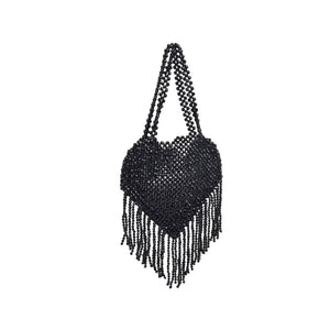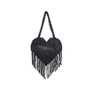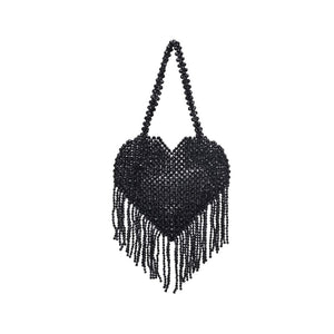 Valeria is the heart-shaped Evening Bag that's all about the love. Decorated with rhinestones and a playful fringe, it's a fun and flirty companion for the night. With an open closure and unlined interior, it's ready for your evening escapades.
