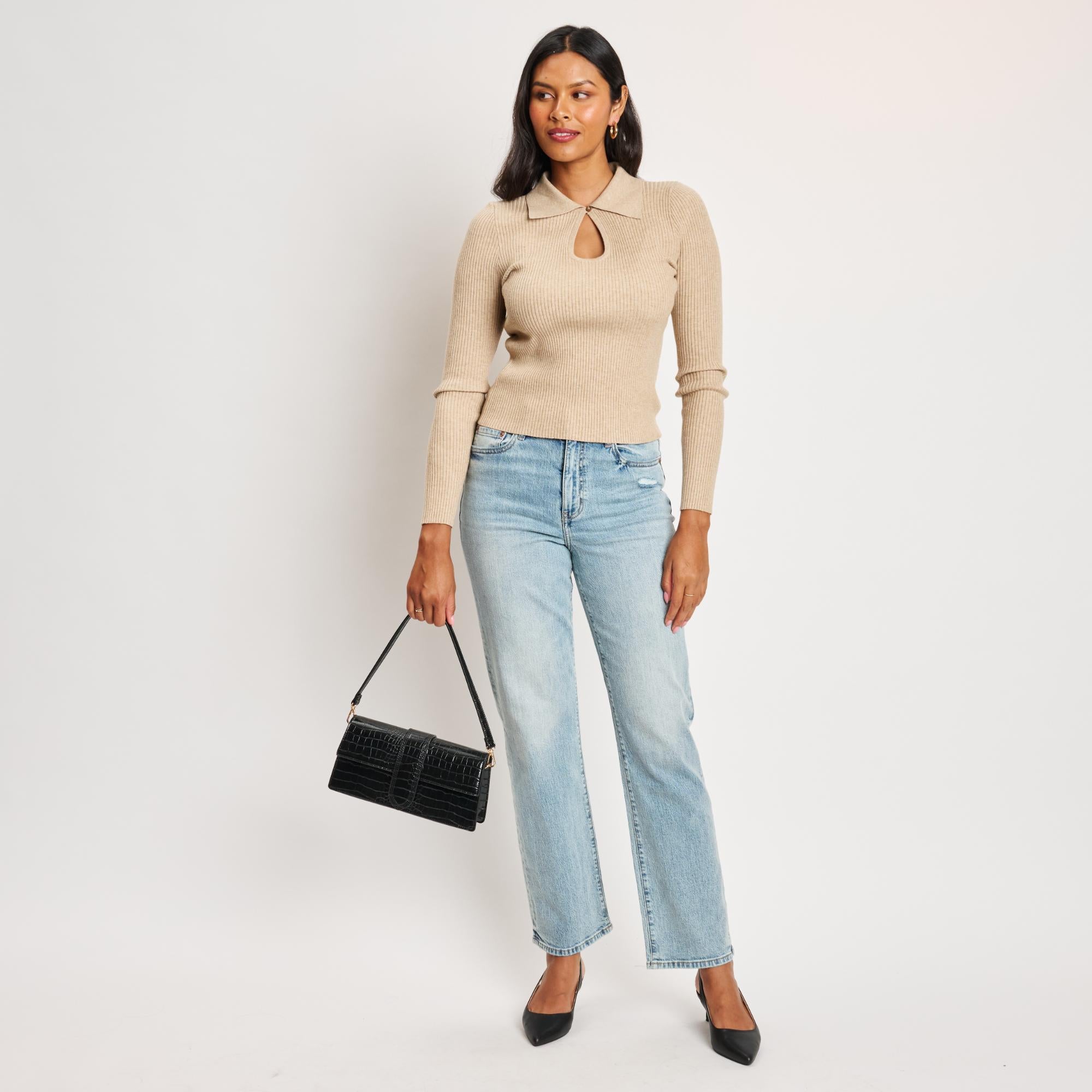 Two carrying options, thanks to the short shoulder strap and an adjustable, detachable crossbody strap, for hands-free ease. Perfect for day-to-night plans, fashion-forward wardrobes, and any look that favors polished minimalism.