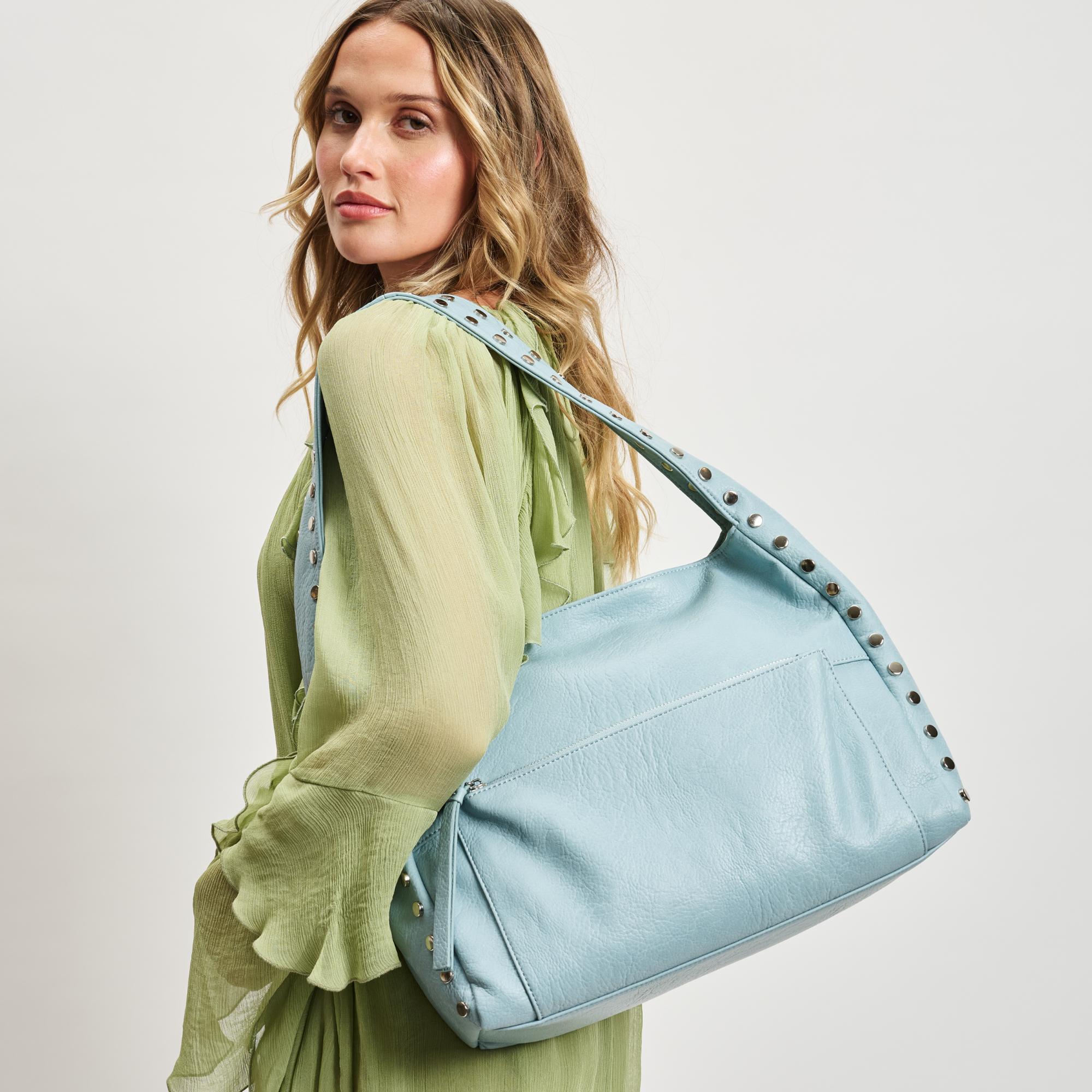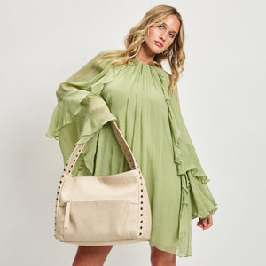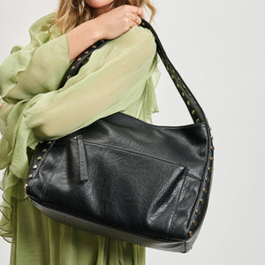 Adorned with subtle studded details, this hobo adds a touch of elegance without compromising versatility. Interior pockets keep you organized, making it ideal for both workdays and evenings out.