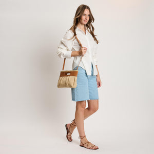 Lightweight, pleated silhouette holds essentials without bulk. An adjustable crossbody strap lets you wear it hands-free or slip it into the top handle for a polished clutch. Textural contrast and braided trim offer refined, trend-forward appeal, ideal for weekend brunch, city errands, or evening plans.