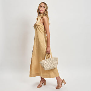The spacious interior features thoughtful organization, making it easy to find essentials on the go. With both short handles and a removable shoulder strap, it effortlessly transitions from day to night.