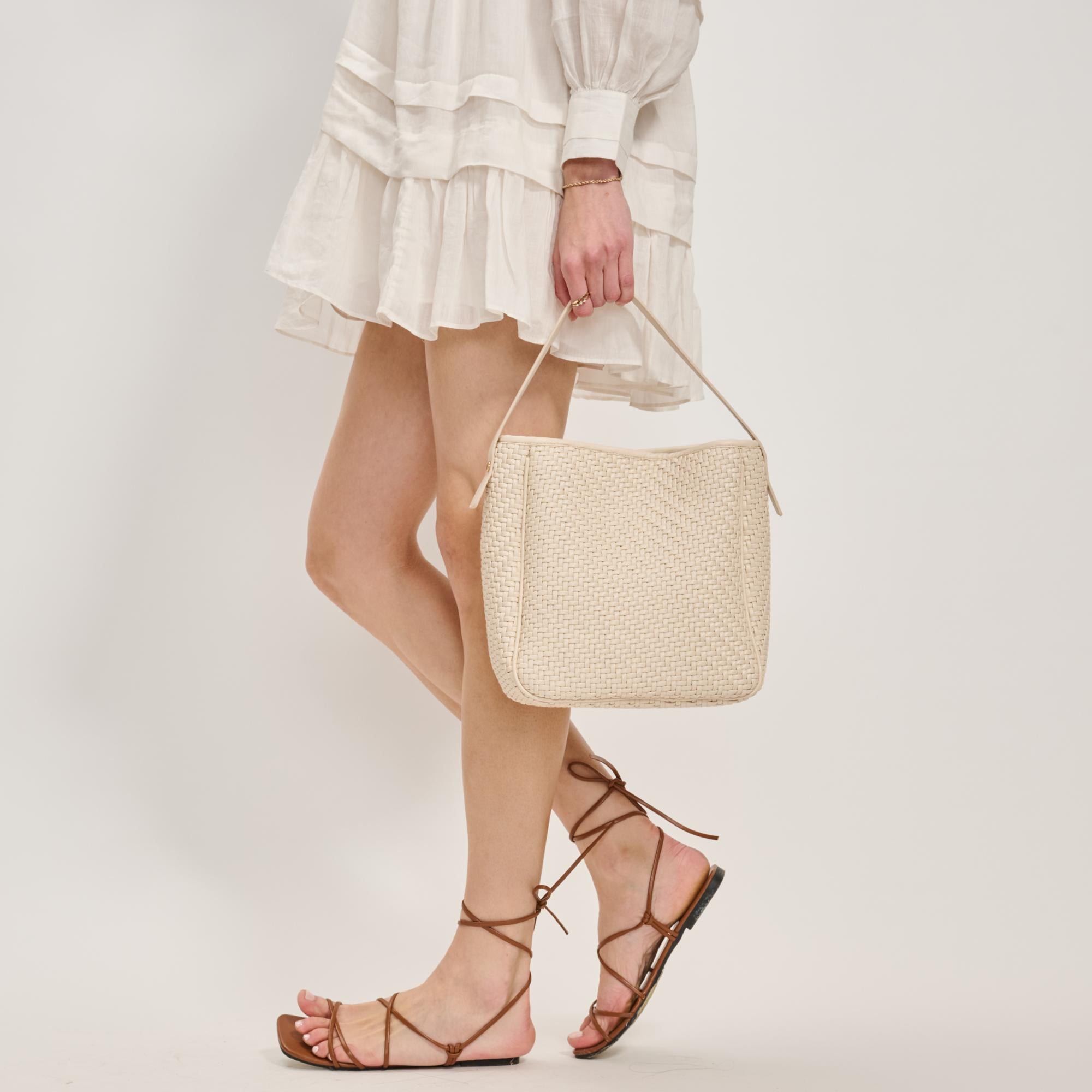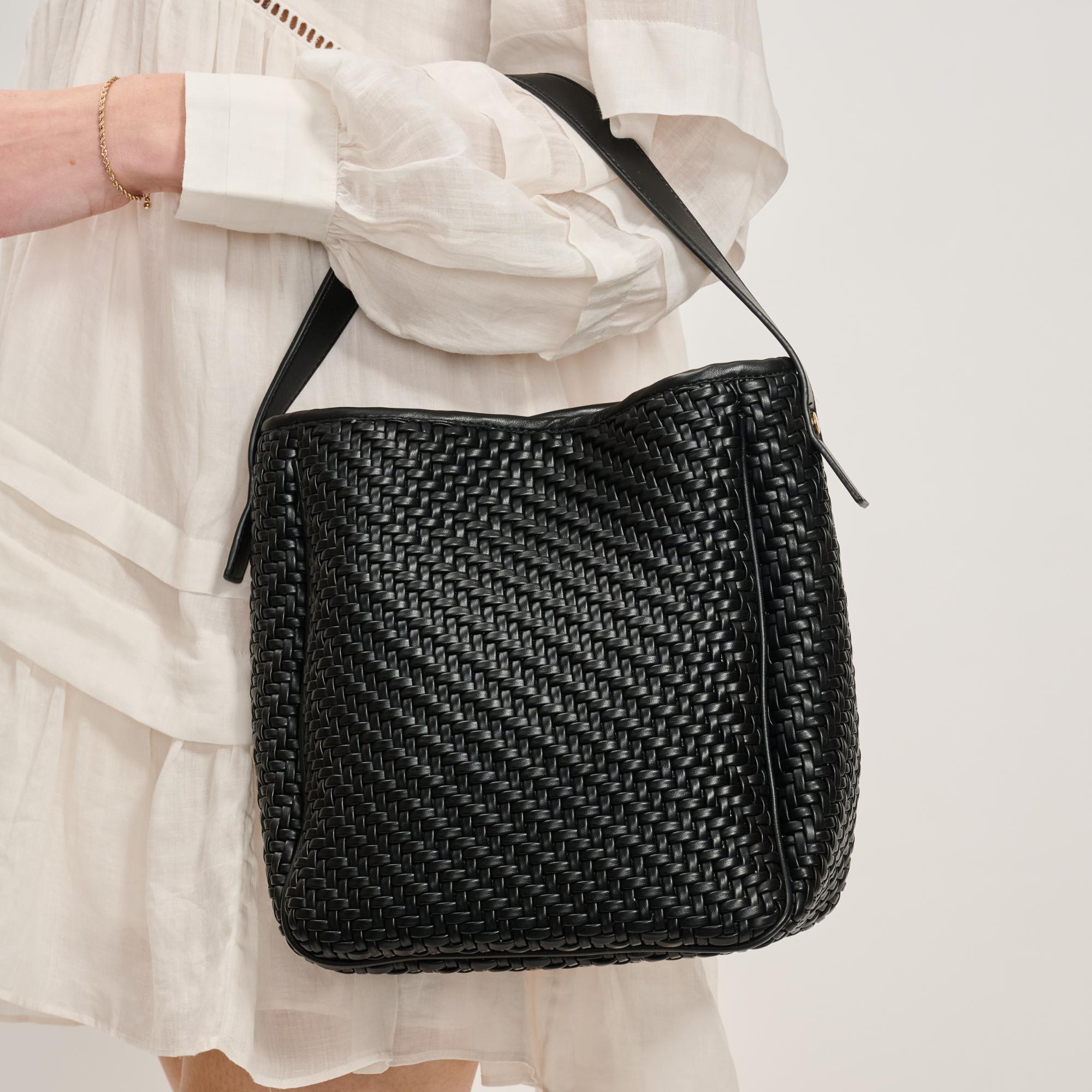 • Exterior Details: Braided Design, Handle Strap, Adjustable Shoulder Strap, Gold Hardware