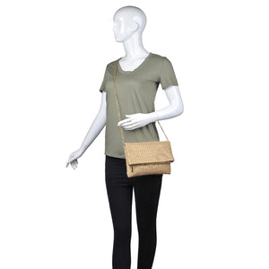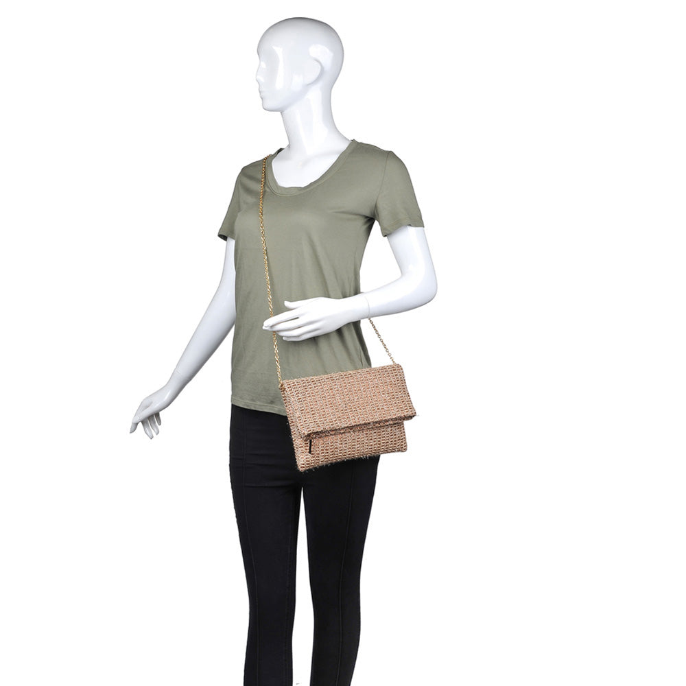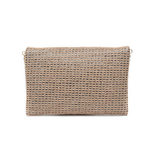 Exterior Details: Fold over clutch with hidden front slip pocket