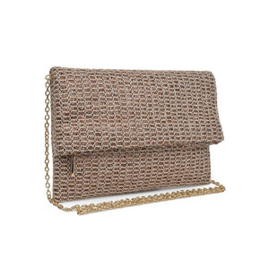Exterior Details: Fold over clutch with hidden front slip pocket