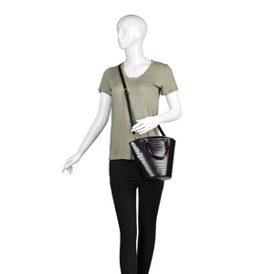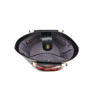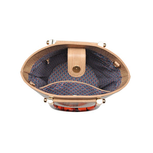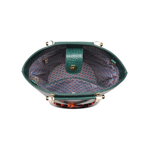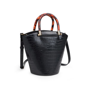 Exterior Details: Bucket silhouette with acrylic tortoise shell handles
