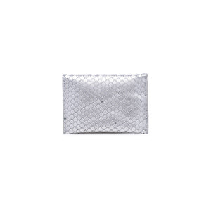 This metallic clutch features a beautifully textured exterior, making it the perfect accessory for any outfit—day or night.