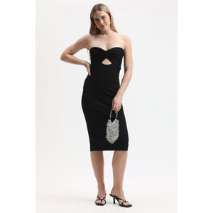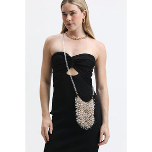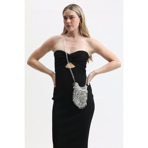Presenting Mariah, the Evening Bag for the woman who adores the spotlight. Drenched in dazzling rhinestones, Mariah is a testament to glitz and glamour. Its open closure leads to an unlined interior, underscoring its minimalist, yet captivating allure. Mariah encapsulates a world of glamour, promising to add a touch of sparkle to any ensemble. Make every night a red-carpet event with Mariah.