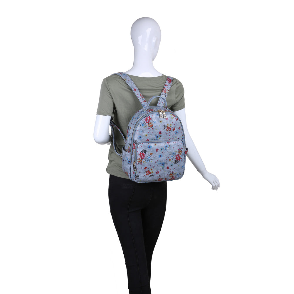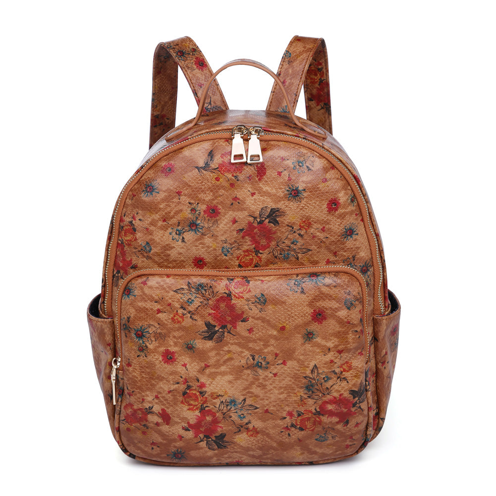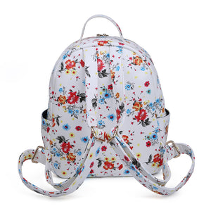 Exterior Details: Floral print with 1 zipper pocket and 2 side slip pockets