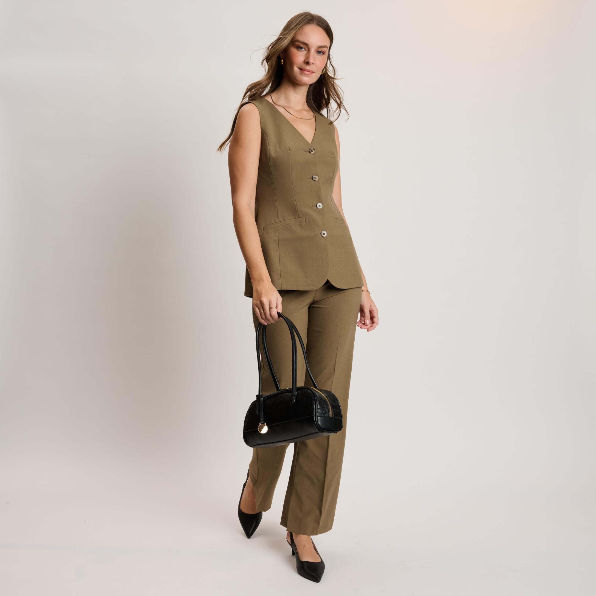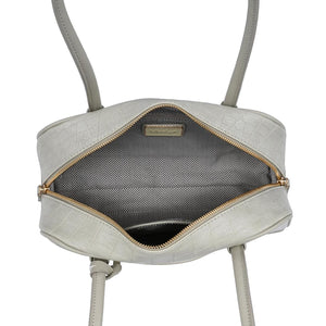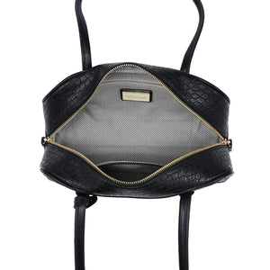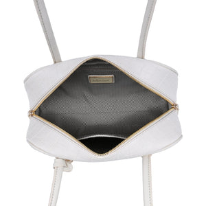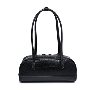 Croc-embossed texture, structured base, dual zipper top, interior pockets. Lightweight yet structured, comfortable straps sit on the shoulder, subtle hardware and round charm add polish. Ideal for work-to-evening, holds phone, wallet, keys, small essentials. Trend-forward, versatile, built to finish modern looks.
